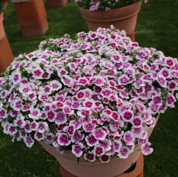 Dianthus ‘IQ Purple Ice’ – Compact growth habit, covered in blooms winter-spring, will need deadheading for rebloom