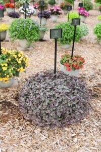 • Gomphrena ‘Ping Pong Purple’ (Sakata Ornamentals): This plant was added to our catalog and thus listed as new in our garden because we wanted it for our cut flower liner program. We had no idea it would be such a big hit as a stand-alone plant. It looked awesome and got tons of compliments throughout the entire trial season. This was the most talked about plant in our new variety area. It had great performance from June through September!