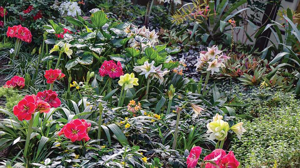 “Each holiday since, we’ve curated around 40 varieties pushing close to 1,000 bulbs that cycle in and out of containers and in-ground plantings throughout the conservatory and Gardeners Showhouse,” Norris says. “People want more, more, more. Every year the general consumer response is, ‘Why do the amaryllis have to stop?’ We shift our curatorial focus each year, but generally try to showcase novelty varieties or something different than the standard color offerings. There’s not a ton of breeding going on in Hippeastrum — just enough in my opinion – so selecting new varieties from wholesale sources isn’t overwhelming, and we can always round out the display with a healthy cast of old favorites for people to enjoy.”