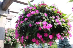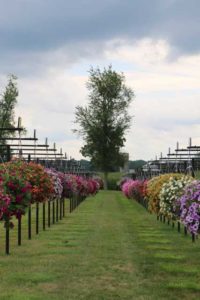 Hanging basket trials at Raker-Robertas' trial gardens.