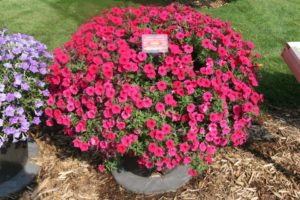 Petchoa SuperCal Series: (left to right) Bordeaux, Light Yellow, Cinnamon (Sakata Ornamentals/Mast Young Plants)