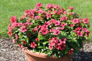 Gloria Rose Combo: Hypoestes 'Hippo Rose,' Euphorbia 'Diamond Frost,' Impatiens 'Rockapulco Rose' (Proven Winners/Four Star Greenhouse)