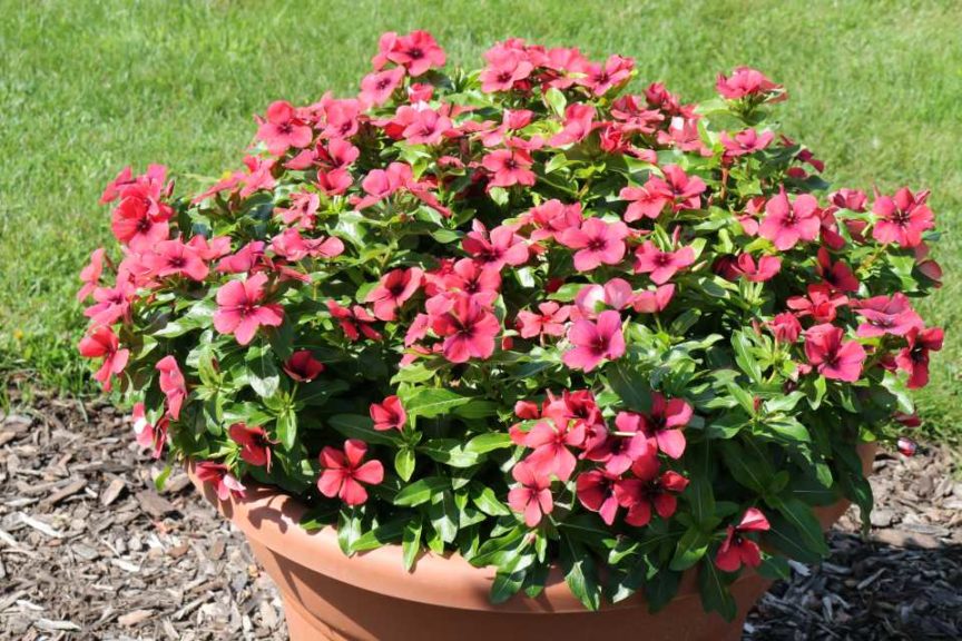 Vinca 'Tattoo Papaya' (PanAmerican Seed/Michigan State University Horticulture Gardens)