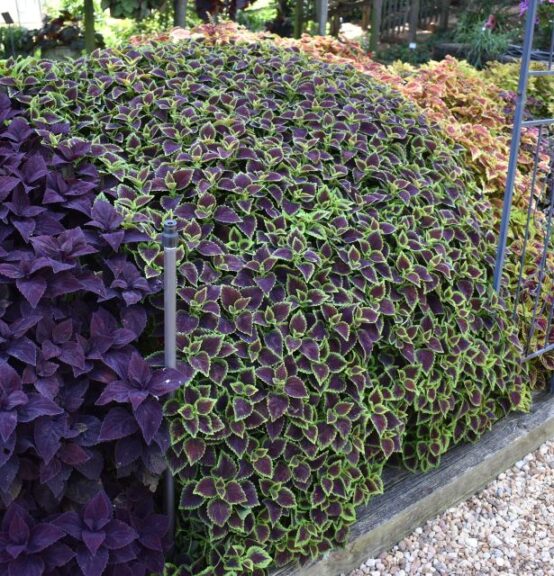 This new color combo brings a rich, deep purplish-brown with mint-green edges into the mix. Planted en masse, this cultivar is perfectly composed, forming a smooth mound with dense inner foliage.
