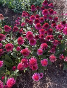 ‘Watermelon Deluxe’ coneflower had the most amazing color and presentation yet in our echinacea bed. This selection has double flowers, sturdy flower stalks, and provides bloom after fabulous bloom.