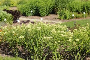 The goal of our trials is to evaluate the long-term performance of perennials and shrubs in a unique climate. Currently, the trial program in the Iowa Arboretum consists of 364 perennial plots and 46 shrub plots with a total area of almost a full acre for our third year of trialing. The climate in Central Iowa for this season was very wet, receiving almost 20 inches of rain in June and July. The plants were all affected differently; those that love wet feet thrived; however, we did lose some perennials and shrubs that were not a fan of the consistent heavy rains. During mid-season, we experienced more humid and hotter weather than on average, which led to plants that were doing okay to crash. Some plots also experienced temporary flooding, and we experienced high winds in August, with wind gusts reaching 60 mph. The unpredictable weather events throughout the summer affected the trial plants’ performance and appearance.