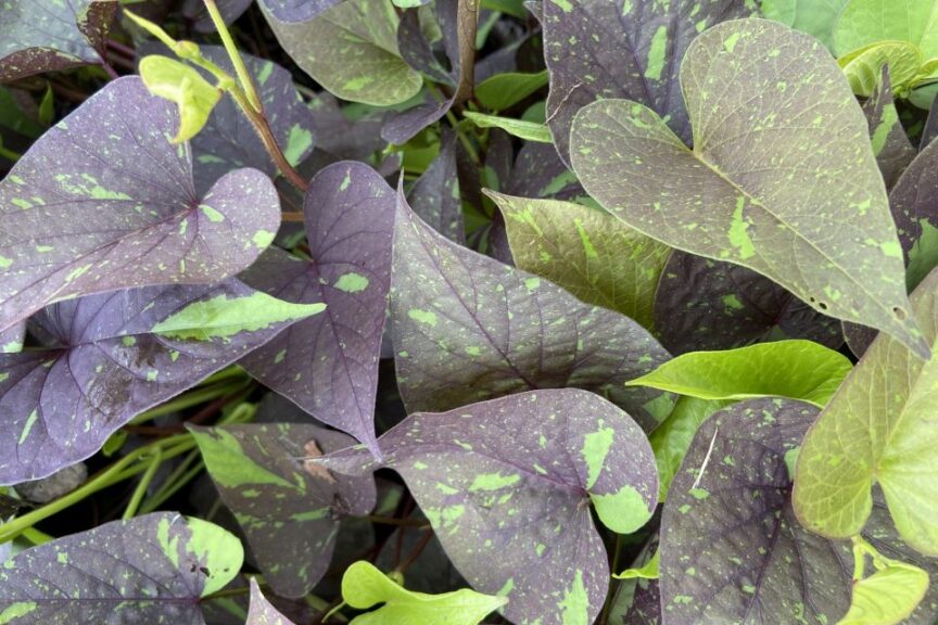 - Sweet potato vine Ipomoea batatas Sweet Caroline Medusa Black, Medusa Green, and Sweetheart Shadowstorm (Proven Winners)