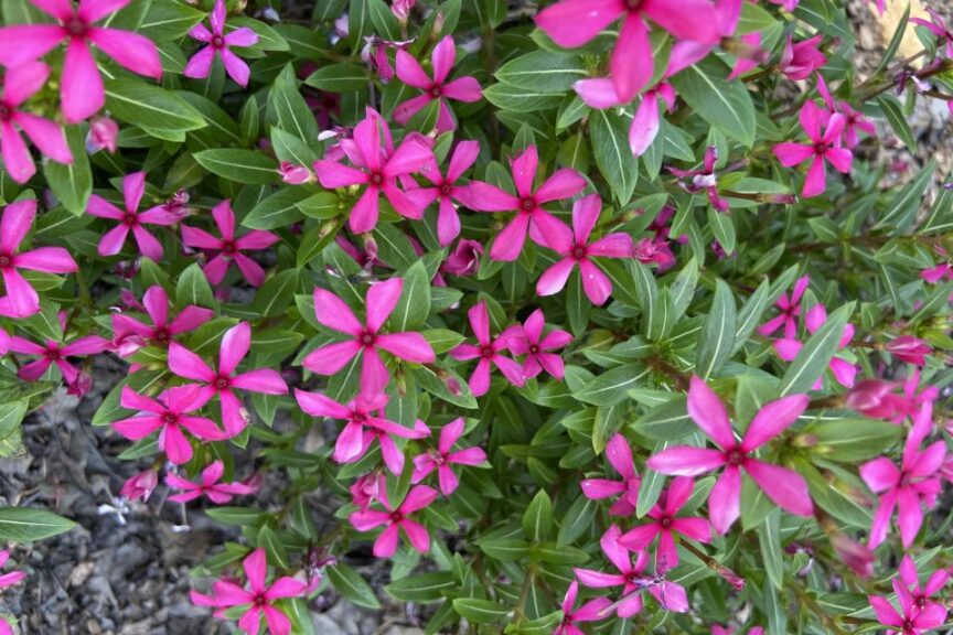 Vincas are well-known for thriving in heat and humidity, and these two series lived up to that reputation. The Soiree Kawaii Series offers a profusion of diminutive flowers in a range of colors, creating a dense, sparkling effect across the plants. The newer Soiree Flamenco Series features attractive ruffled flowers and is also a prolific bloomer.