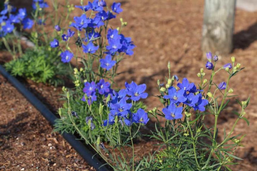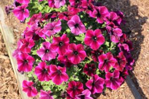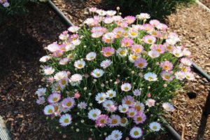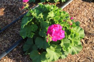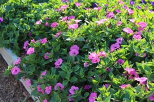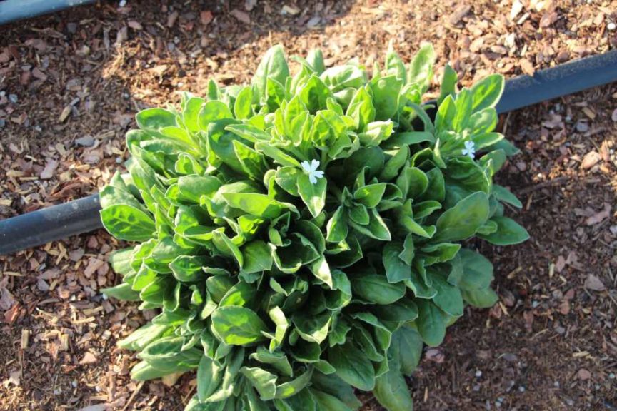 A ‘Viking Red on Chocolate’ begonia from Sakata Ornamentals attracted some visitors attention because of its unusual color. “It’s also a 2019 All-America Selections winner,” says Justin Hancock, Costa Farms Horticulturist. American Takii’s Delphinium ‘Jenny’s Pearl Blue,’ which was still in experimental stages during California Spring Trials 2018, stood out at the Costa Trials with its vivid blue color. This is a true-blue winter annual for the market. The Gerbera Giant series from Floranova is a new offering for containers that exhibits giant blooms that won’t get lost in the mix. Proven Winner’s Amazel basil, an Ocimum hybrid that is resistant to downy mildew, was also on display. Its vigorous growth habit was apparent at Costa’s trials. Fortunately, the plants are sterile, so they continue to produce leaves and shoots even after flower initiation.
