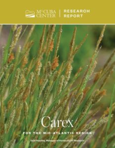 The trial evaluated 70 types of Carex, including 65 species and five cultivars native to the Mid-Atlantic region. Results are available now in a new report, “Carex for the Mid-Atlantic Region”.