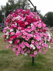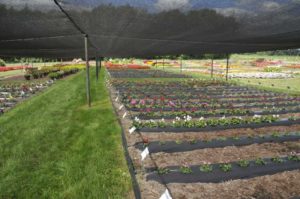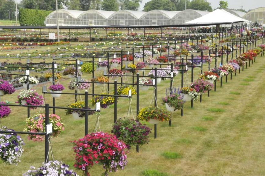 Raker-Roberta’s is located in Litchfield, MI, in the southern part of the state. This grower’s public trials cover 7 acres and include sponsored areas (raised rows, large containers, baskets, landscaped beds), comparisons (raised rows, large containers), and many landscaped areas around the facility. Rows are raised and covered in black plastic with inline irrigation. The large containers and hanging baskets have drip tubes.