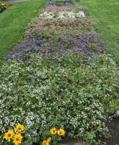 The overall trials were successful, with a few standout varieties, but the inconsistent weather meant that some varieties performed better than others. For example, Scaevola ‘Whirlwind’ performed exceptionally well across all three-color varieties (Blue, Pink, and White) thanks to its resilience to both wet and dry conditions. In contrast, the Cosmos varieties were initially very attractive and floriferous, but later succumbed to wilt disease, likely due to the cloudy, humid weather that promoted disease spread.
