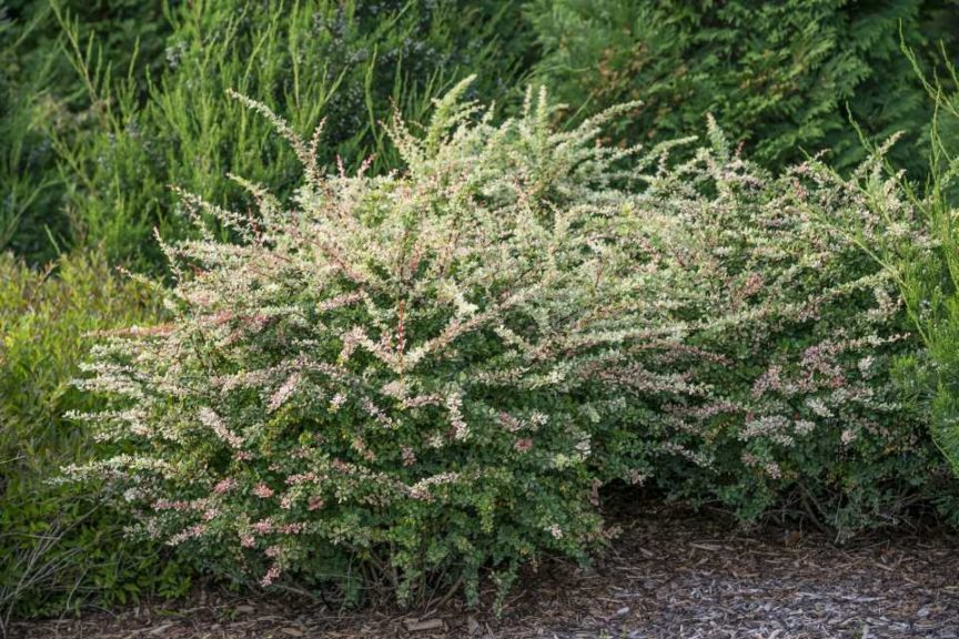 Neat, clean, colorful variegation makes ‘Sunjoy Sequins’ barberry standout in the landscape. Its leaves are splashed white and green, and they develop showy pink tones as the season progresses, making the plant a patchwork of pink by autumn. ‘Sunjoy Sequins’ is more shade tolerant than other foliage barberries, yet it has never shown any burn in Spring Meadow’s trials, and it is drought tolerant once established. It is hardy in Zones 4 to 8 and is deer resistant. -
