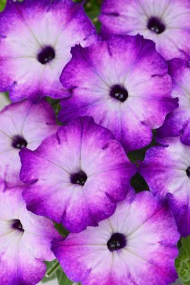 This new novelty in the Headliner series features a deep, velveteen purple center with a creamy yellow halo. These petunias work well for baskets and pots, and boast early flowering for a fast finish with dramatic color. - 24 of 24