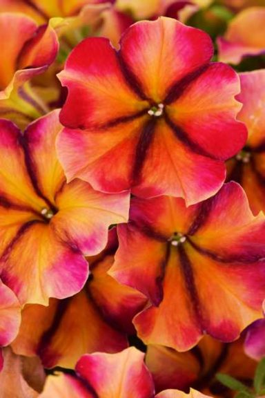 New additions to the Crazytunia Series include Spider Girl, Purple Storm, and Tiki Torch. Crazytunias are best know for their bold and exciting colors and their diverse selection of novel flower patterns. Pictured: 'Crazytunia Tiki Torch' - 23 of 24