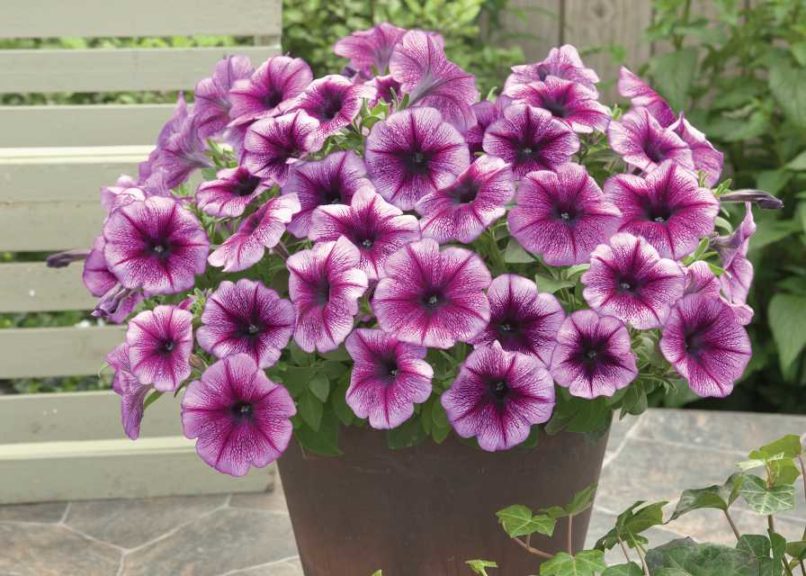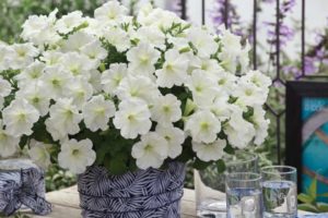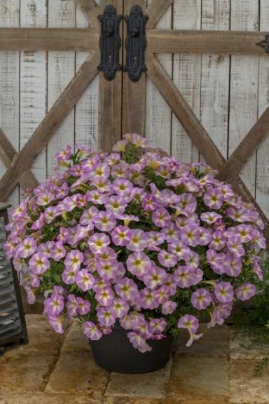 This new star-patterned petunia has bright-purple flowers with white star pattern. Its habit is more mounded than classic Surfinia. This year Surfinia petunias celebrate 30 years.