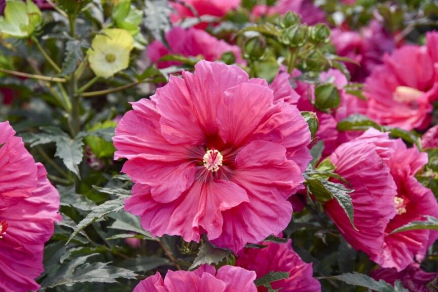 Similar scheduling strategies apply to Heliopsis, Hibiscus, Kniphofia, Leucanthemum, Stokesia, and Vernonia. Across these genera, plugs planted in late June or early July can finish in 7- to 10- weeks for strong late-season sales. Plants benefit from light plant growth regulator applications early in production but often require little regulation in summer conditions. Container sizes vary by crop, but most perform best in premium 1-gallon containers, with Hibiscus and other larger varieties well-suited to 2- to 3-gallon sizes.