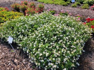 Bidens don’t normally do all that well in our trials and don’t really put on much of a show when they bloom; however, this year I was blown away with Bidens ‘Campfire Marshmallow’. This not only bloomed all season with crisp white flowers with yellow centers, it also had a nice, compact, rounded mounded growth habit. It really has been the best bidens we have trialed in the past few years.