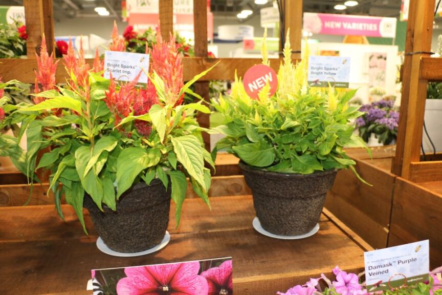 Celosia 'Bright Sparks Scarlet Imp.' and 'Bright Yellow' (Syngenta Flowers)
