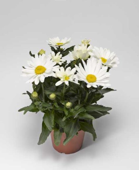 ‘Madonna’ offers consistent uniformity in height and habit, with hardiness to Zone 5a. This shasta daisy features excellent vigor and leaf quality during production for finishing in quarts to large containers using multiple plugs. -