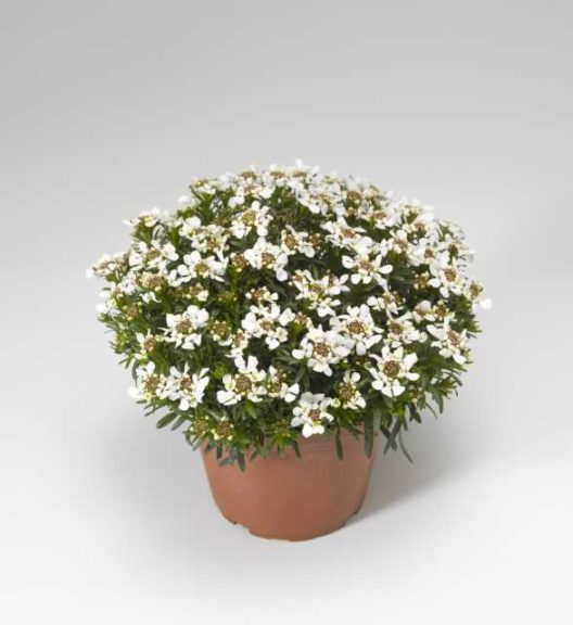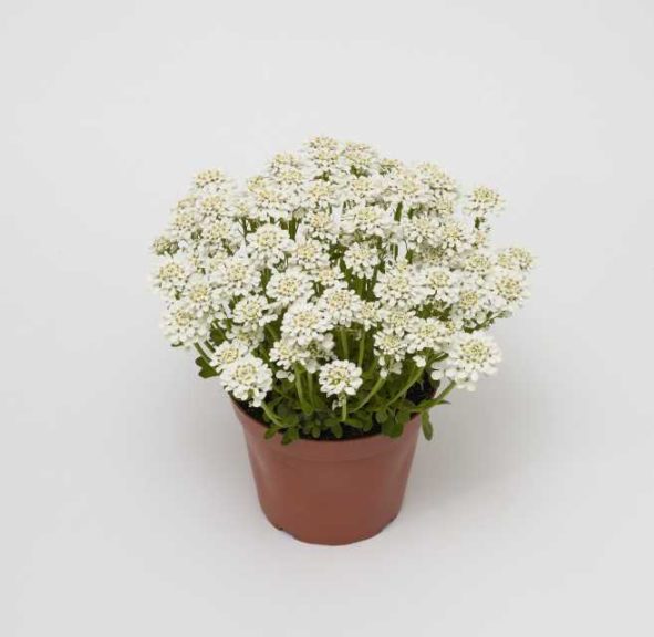 ‘Snowdrift White’ is a late-flowering iberis that works well for extending the selling season. The plants bloom on average two weeks later than Snow Surfer, and four weeks later than Snow Cone. Snowdrift Iberis work well for one-quart to 2½ quart programs. -