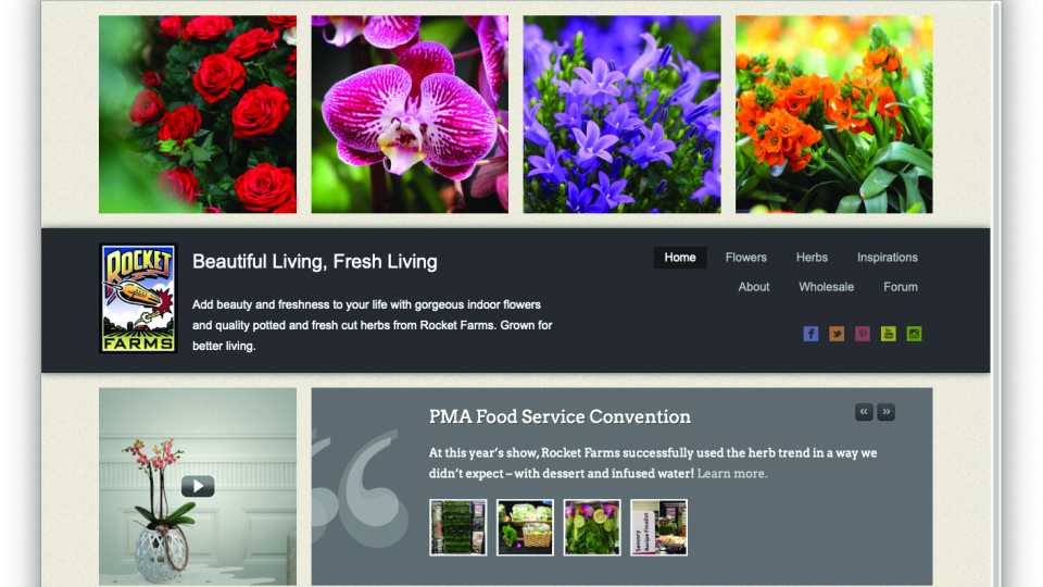 4. RocketFarms.com has an Inspirations tab on its website with sections such as Plants for Living, Beautify, Eat and Drink, Occasions, Give, and Design. When a site visitor clicks on a section, they see Pinterest-like cards they can click on to get ideas for using plants. Plant information pages on the site have specification information for each plant and plant care tips for consumers. There’s also a support forum on Rocket Farms’ website where users, whether they’re growers or consumers, can ask questions.