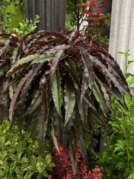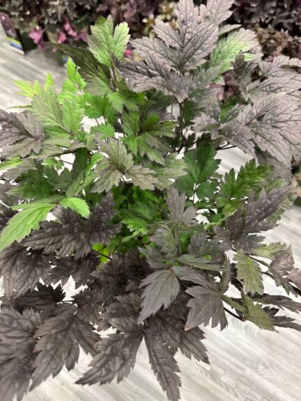 This herbaceous perennial features chocolate-purple foliage that make it a striking addition to a shady garden. Long, slender, light pink, fragrant flower spikes tower above the foliage in late summer and fall. https://www.monrovia.com