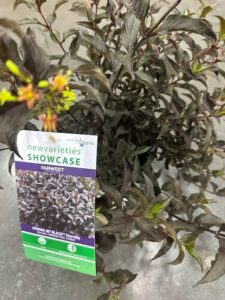 This new Diervilla is a tough, easy-growing shrub that stands out with its dark burgundy-black foliage. The color is especially intense in spring and autumn. The bright yellow flowers add contrast in early summer. https://www.provenwinners.com
