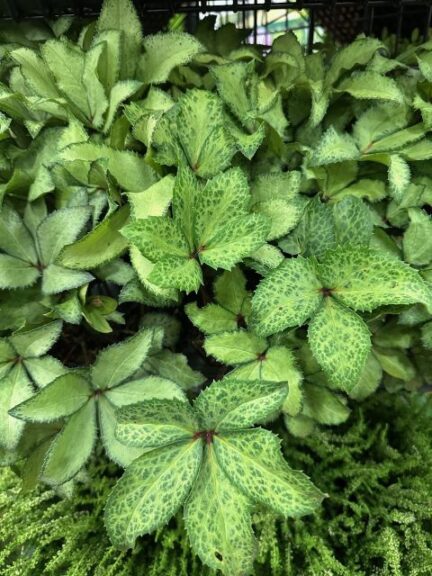 This attractive variety produces bushy mounds of thick evergreen leaves, nicely marbled with silver-gray veins; showy, white blooms gradually mature to pink, then near red. It’s a great selection for shade gardens. https://www.jrtnurseries.com