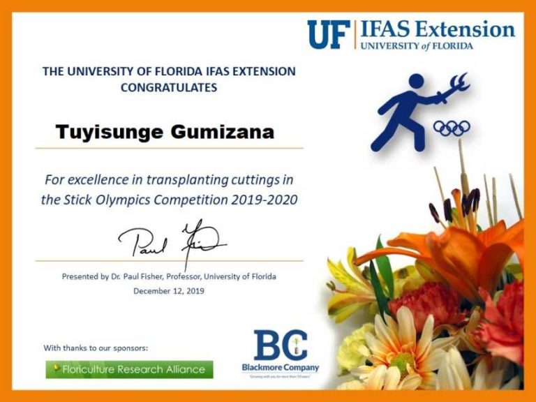 - Individualized certificates from the University of Florida Institute of Food and Agricultural Sciences Extension were provided to all finalists, along with prizes for winners and lunch sponsorship from the Blackmore Co. in an award ceremony.