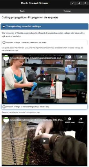 Most growers train by job shadowing (putting new staff next to experienced workers), and it is worth spending the time to observe and discuss the how and why of transplanting. We have developed training videos to help on-board new transplanting staff who may have no background in horticulture. These training videos are available in English and Spanish at BackPocketGrower.org under “Training” and “Cutting Propagation”. It might seem simple to stick cuttings, but there are actually many training elements.