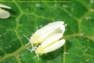 - Adults wings are white with yellow bodies and look similar to greenhouse whitefly (Trialeurodes vaporariorum)