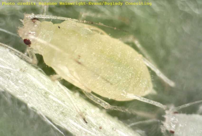 - Larger aphid, 1.5 mm to 3.0 mm. Longer-shaped body, not as round