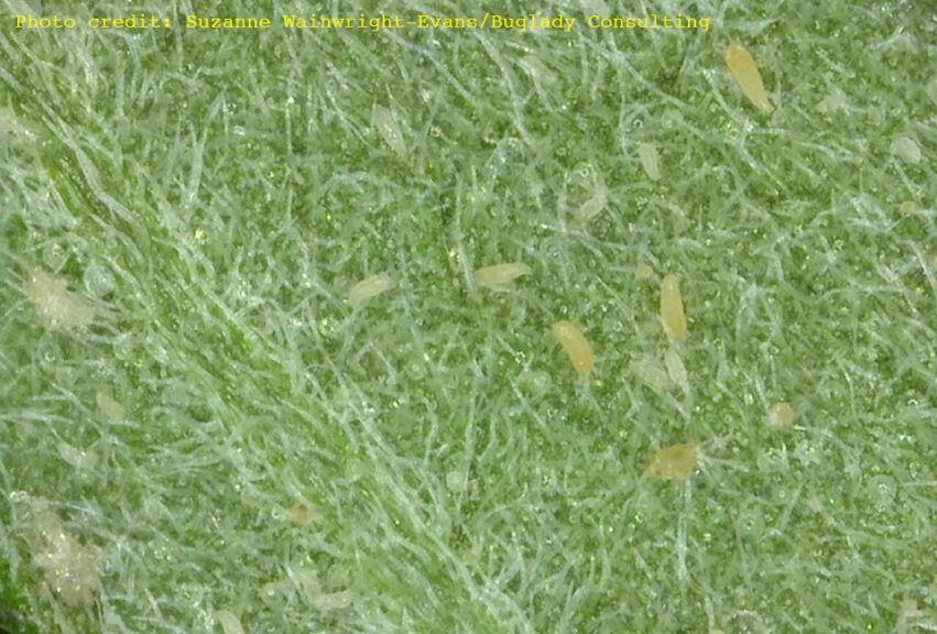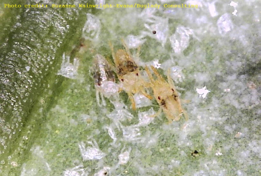 - Found throughout greenhouses but not as often as WFT. Often feeds on foliage, causing white spots.