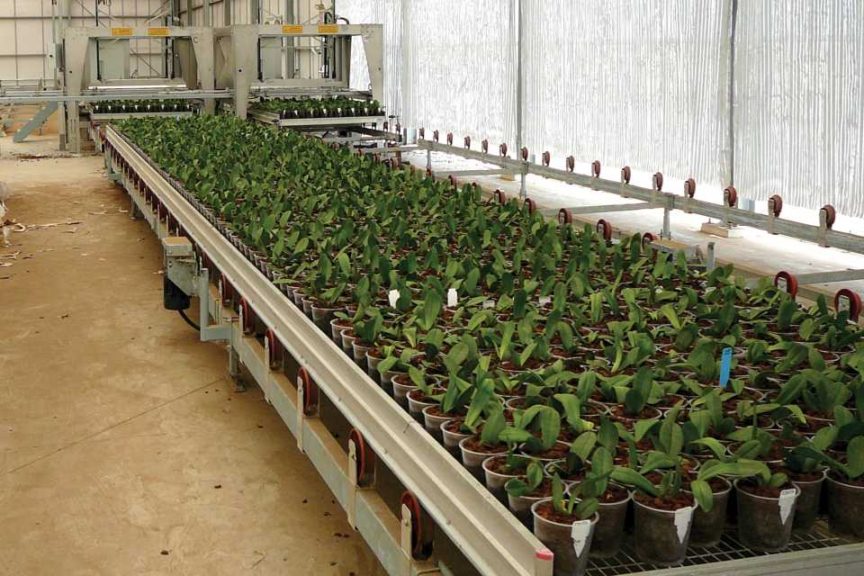 Floricultura Pacific in Salinas, CA, specializes in delivering stock orchids quickly and cost effectively to growers in North American markets. Completed in 2011, the 10-acre Salinas facility — which serves as the North American base for parent company Floricultura — is the epitome of innovation, with labor-saving cranes, planting and spacing machines, camera-grading machines, and much more.