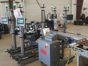 When auto-applying the adhesive labels to pots in trays, the Line Boss applies labels to the pots on both sides of the tray and can be connected in line with the soil filling equipment and planting line. Traditionally, growers had to manually add the plant stake and the addition of a secondary adhesive label for the grower information, barcode, retail, etc., on every pot.