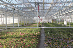 The greenhouses at Foertmeyer & Sons often have many different crops in a given bay all with different irrigation needs, and the booms offer flexibility in how to grow and irrigate the separate crops.