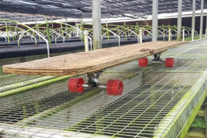 Neil Marek, General Manager of the Tissue Culture division at Magnolia Gardens Nursery, says plenty of good ideas are hiding in any operation. The key is taking the time to ask your employees for ideas, allow them to voice their position, and listen to them. That’s how the nursery came to use an inexpensive, low-tech solution to a problem that has had a big payoff. An employee came up with the idea to use a skateboard attached