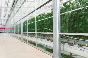 The new greenhouse at Vineland is all glass with insulated glass-unit sidewalls. The roof is tempered single-pane glass. Gary Moffatt, COO at Vineland Research and Innovation Centre, says it was important for the facility to have the feel of a commercial greenhouse, but also have consistent light levels for research. Because they found that 90% of new builds are glass, designers chose to go with a balance between where they felt the industry was going and what the research needs were for the Centre.